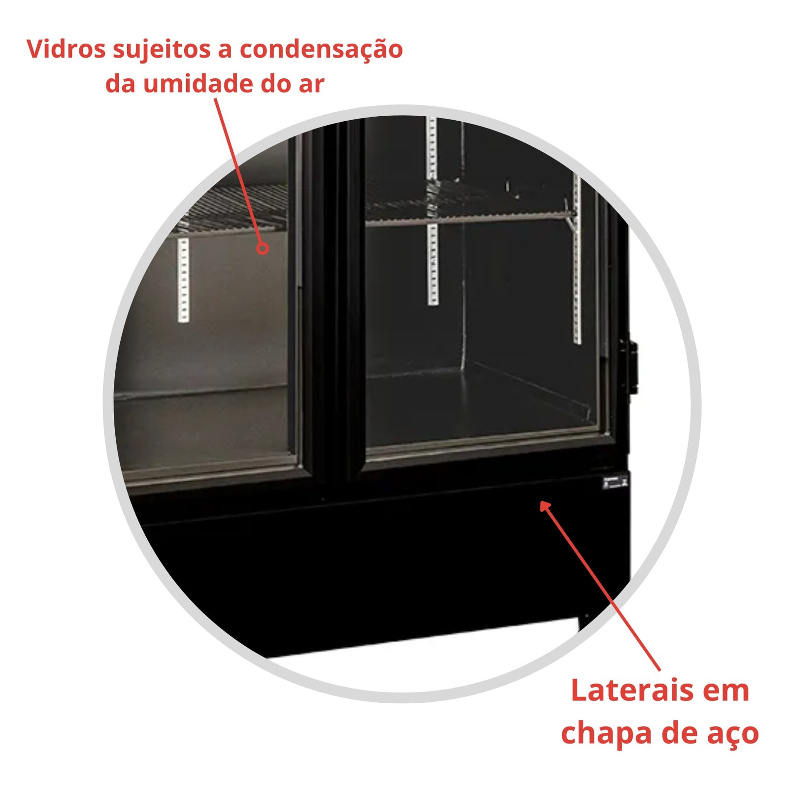 Por possuir Isolamento em Poliuretano Injetado, este modelo oferece uma excelente manutenção térmica e economia de energia, sendo perfeito para locais que buscam manter produtos na temperatura ideal de consumo, mesmo com o abre e fecha constante dos clientes. A vitrine em vidro duplo temperado termoisolante reduz a condensação externa, garantindo que a visão dos produtos permaneça nítida e atraente 100% do tempo.