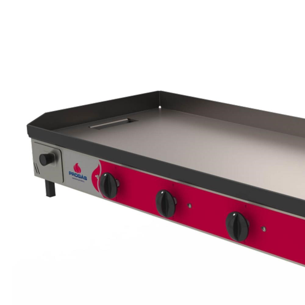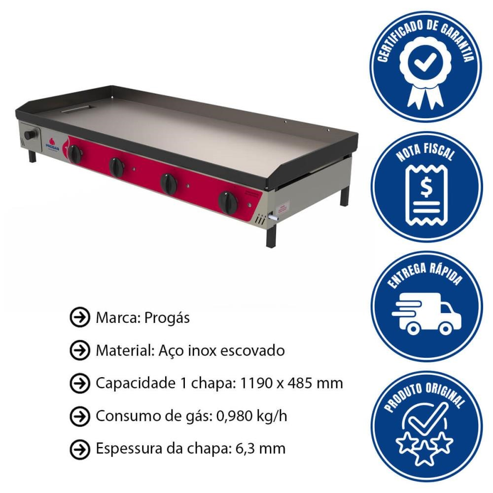 A Chapa Progás PR-1000 G Style une a robustez do acabamento em aço inox escovado com a potência necessária para o dia a dia de lanchonetes de grande porte e hamburguerias, facilitando a organização e a higiene do seu setor de produção. Com 1 metro de largura, este modelo é ideal para quem precisa de espaço para operar múltiplos pedidos simultaneamente, permitindo separar áreas da chapa para diferentes tipos de alimentos, como carnes, pães e acompanhamentos.