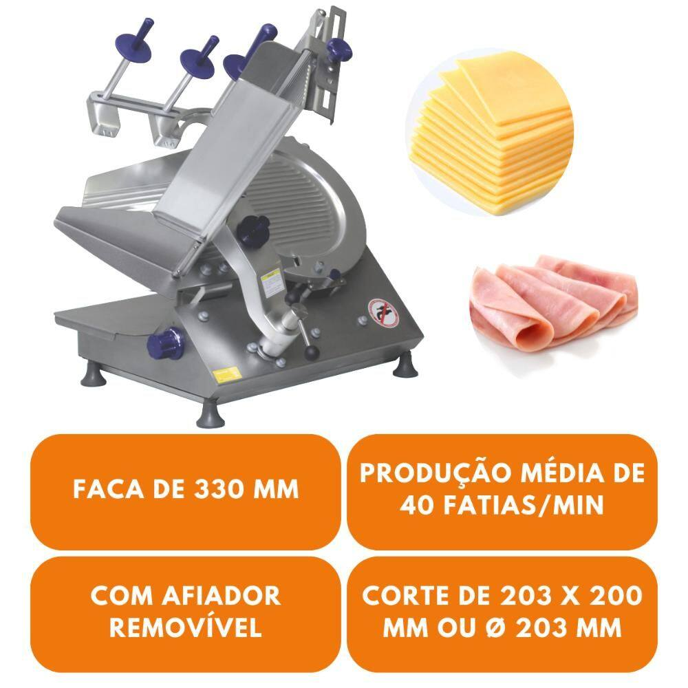 Diferente dos modelos manuais, o AXT-33i oferece uma produção média de 40 fatias por minuto, otimizando drasticamente o tempo de operação. O equipamento conta ainda com um carro removível que simplifica a limpeza profunda e a manutenção diária, além de uma regulagem de corte de alta precisão para diferentes padrões de fatiamento.