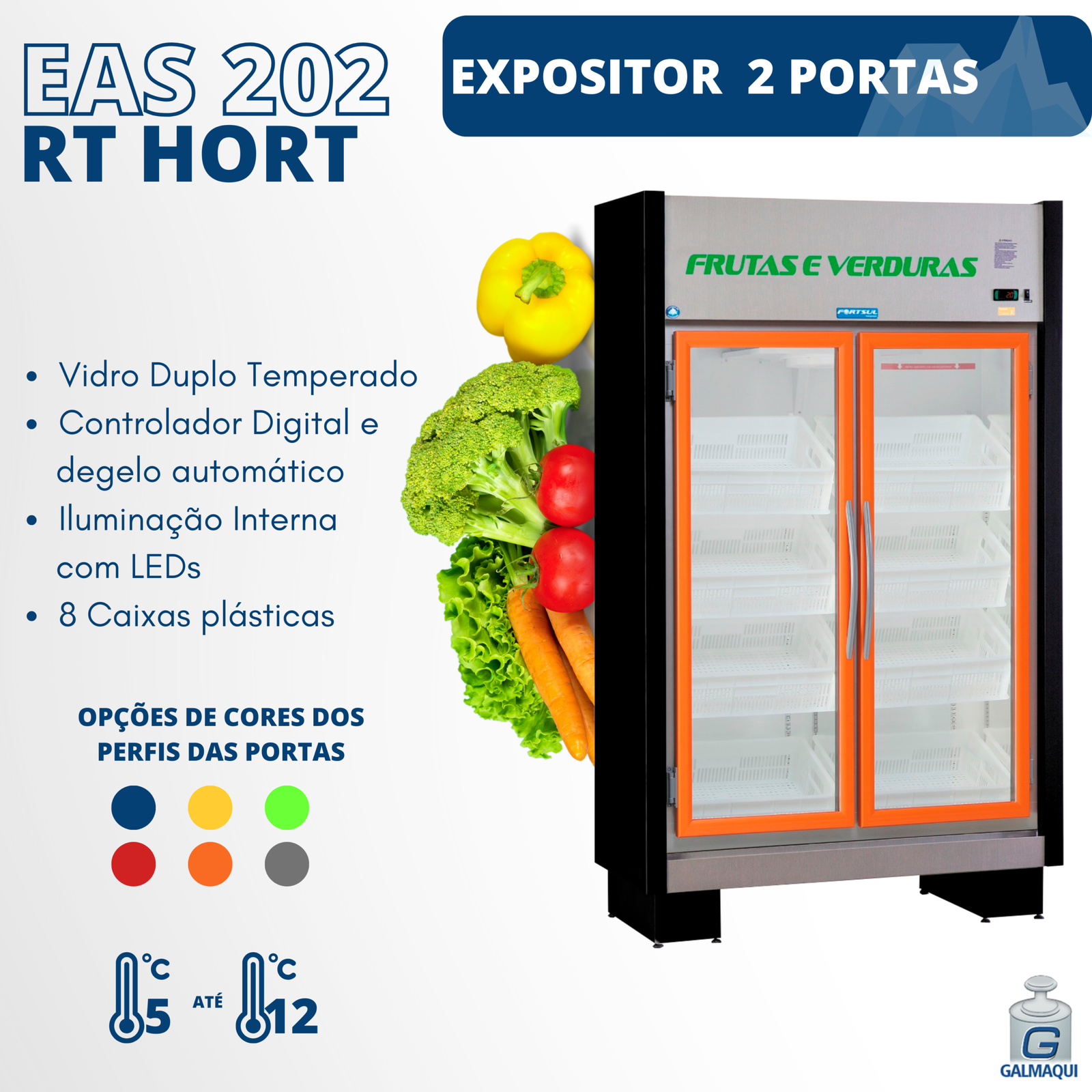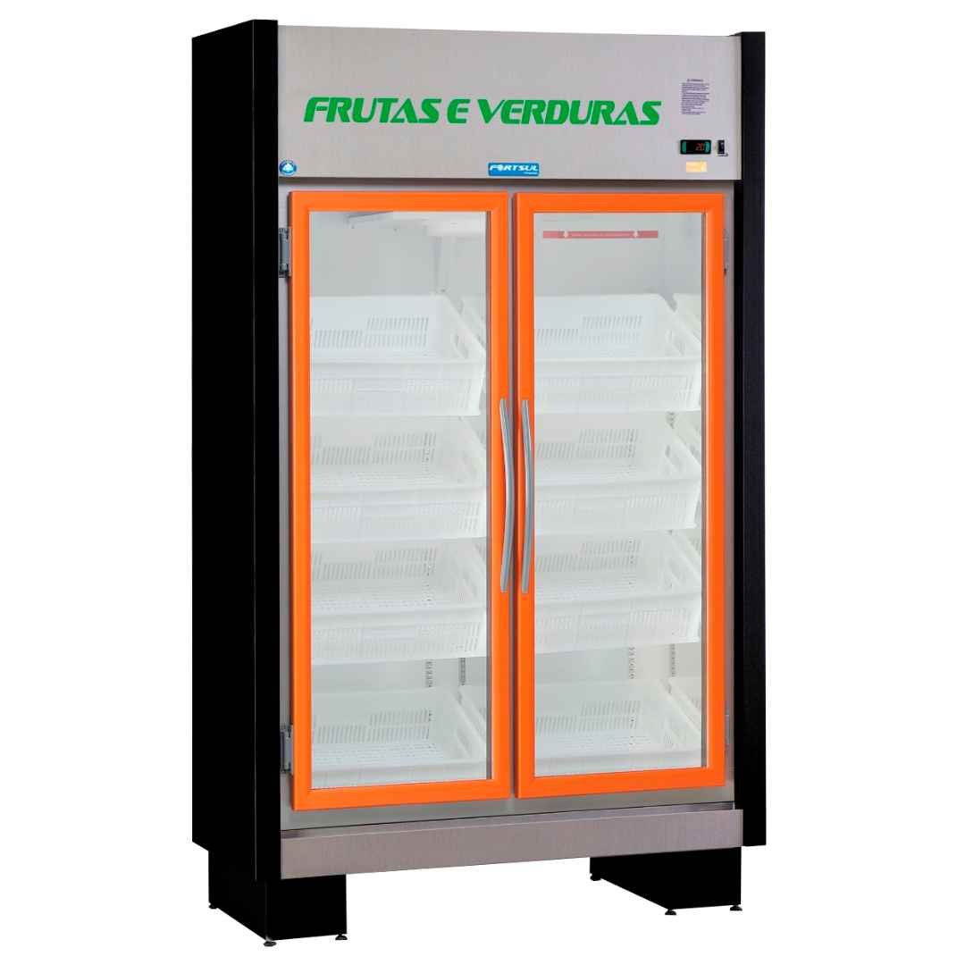 O Expositor Fortsul EAS 202 RT HORT une a robustez do acabamento em aço pré-pintado com a tecnologia necessária para o dia a dia de casas de frutas e vegetais, facilitando a organização e a higiene do seu ponto de venda. Este modelo de 2 portas foi desenvolvido com um sistema de refrigeração balanceado que preserva a hidratação natural dos vegetais, evitando que as folhas murchem precocemente e garantindo que as frutas mantenham o aspecto de recém-colhidas por muito mais tempo.