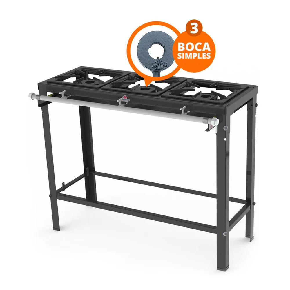 Por possuir Grelhas em Ferro Fundido 30×30 cm, este modelo oferece uma durabilidade superior e estabilidade para panelas de diversos tamanhos, sendo perfeito para locais que exigem um equipamento resistente para uso contínuo. Sua estrutura é montada com sistema de encaixe, o que garante firmeza ao conjunto e facilita o transporte ou futuras manutenções.