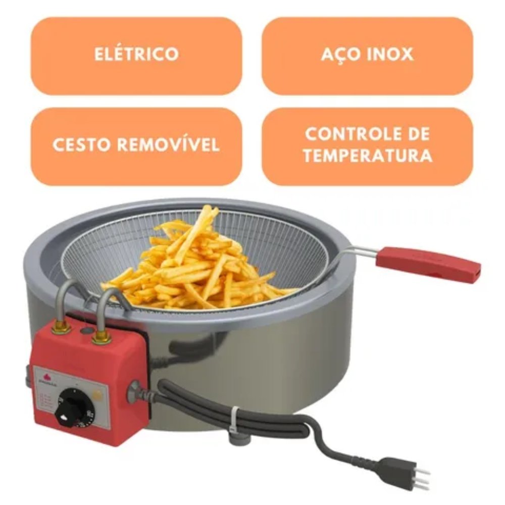 Por possuir Cuba em Aço Inox removível, este modelo oferece uma durabilidade superior e facilidade de limpeza, sendo perfeito para locais que exigem alto desempenho e agilidade. Com capacidade para 5 litros de óleo, é o equipamento profissional que garante a padronização de batatas, salgados e porções com máxima estabilidade térmica e segurança.