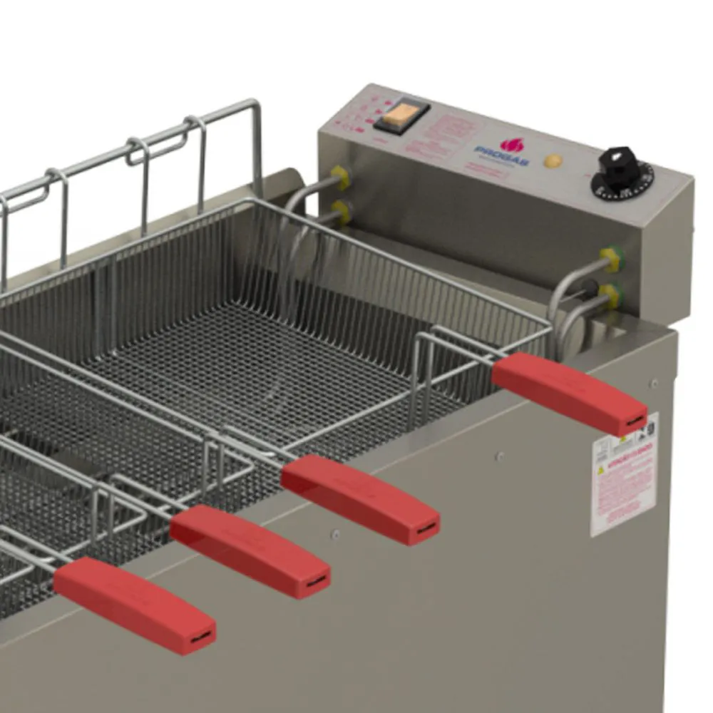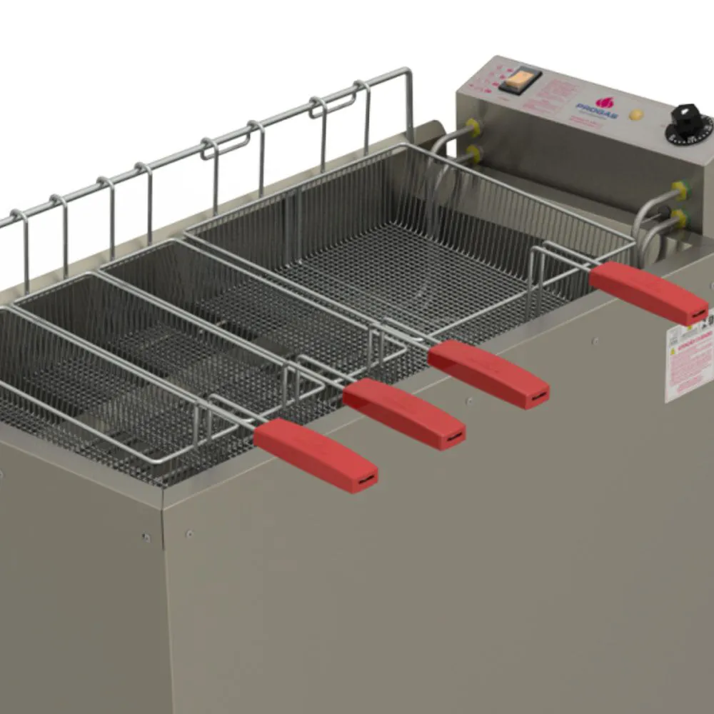 O Fritador Progás PR-3008E ST une a robustez do acabamento em aço inox escovado com a tecnologia Água e Óleo, facilitando a organização e a higiene da sua cozinha. Este modelo da linha Fry Fritter é ideal para estabelecimentos de alto giro, como grandes lanchonetes e restaurantes, que buscam produzir frituras perfeitas — crocantes por fora e macias por dentro — sem a transferência de sabor entre diferentes alimentos.
